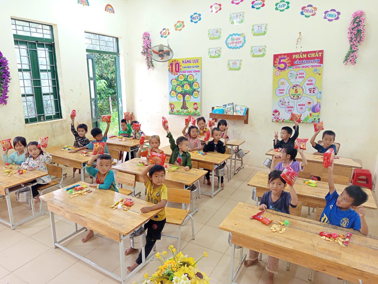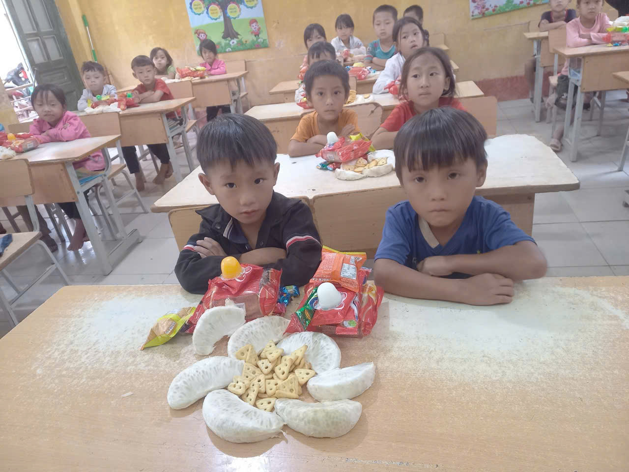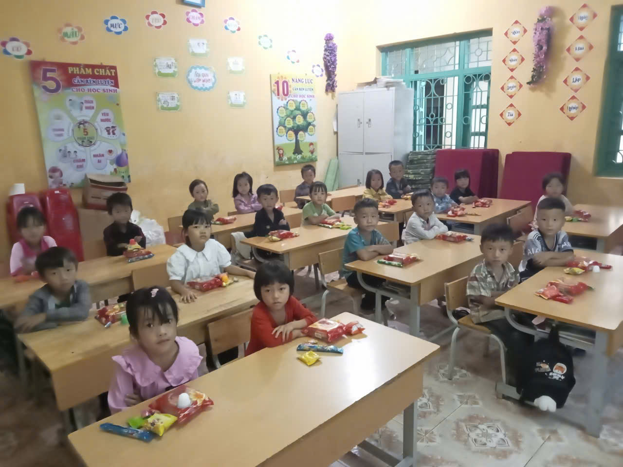 Ngay từ đầu giờ chiều, không khí trở nên rộn ràng với tiếng cười, tiếng gọi nhau ríu rít, những đôi mắt sáng lên khi thấy bàn lớp được bày biện bánh kẹo, sữa .