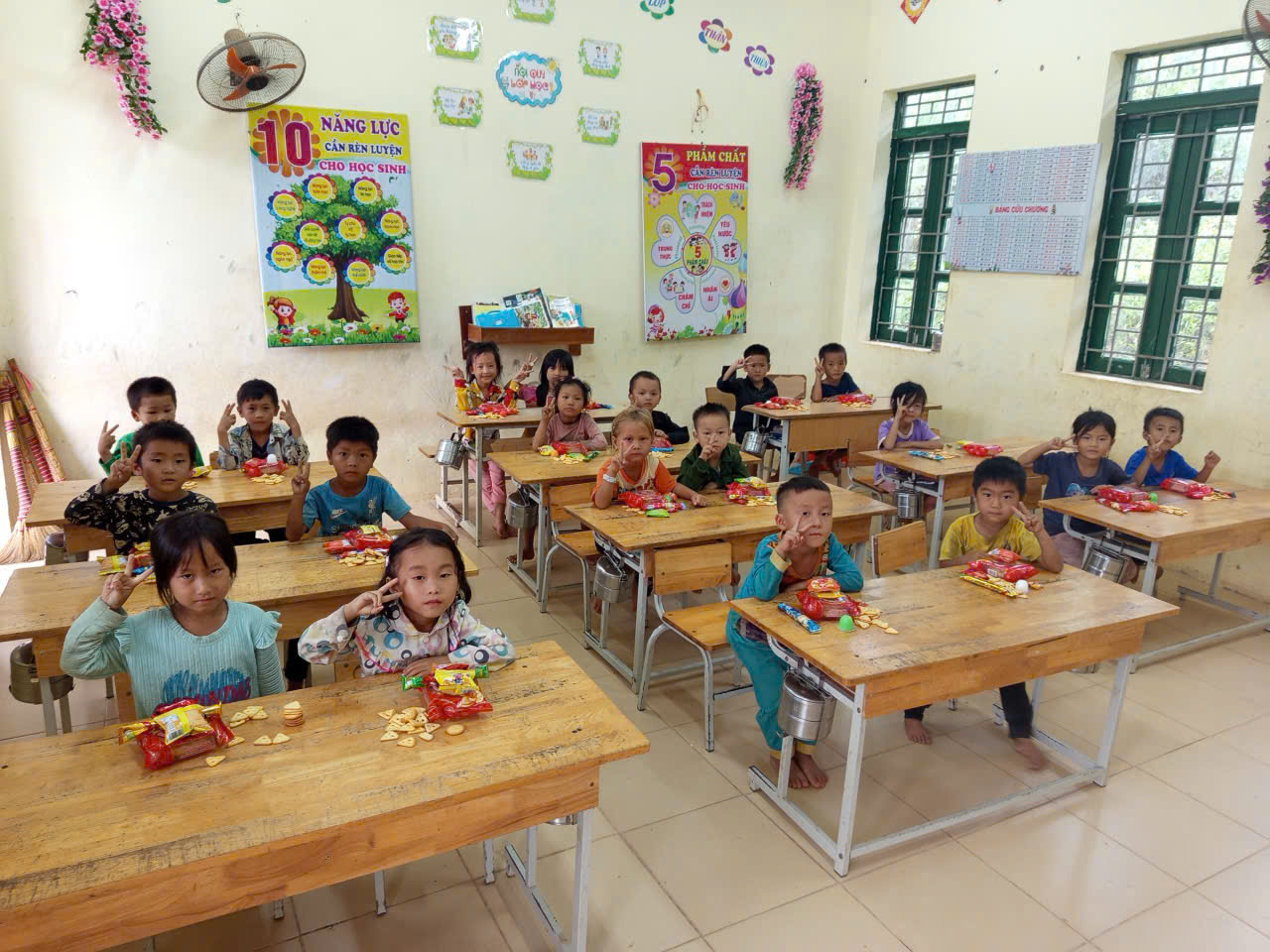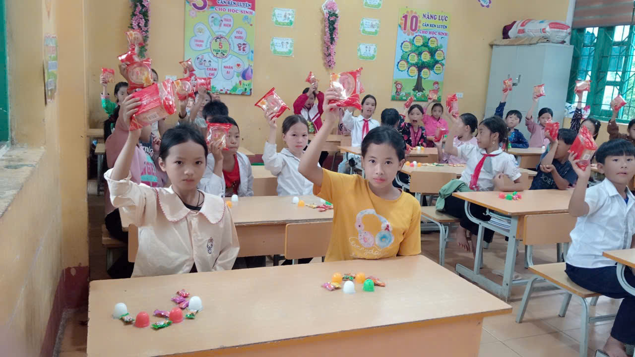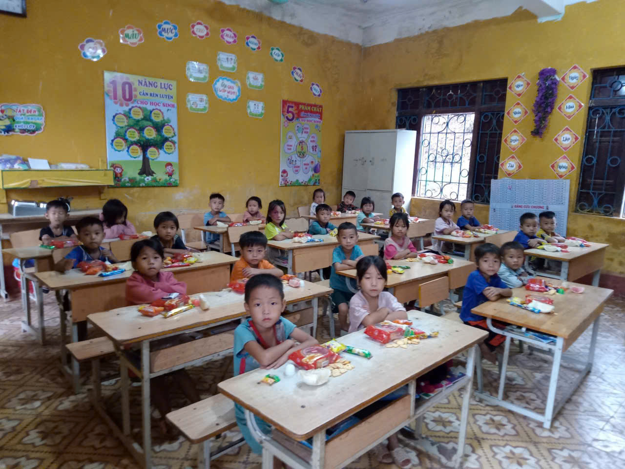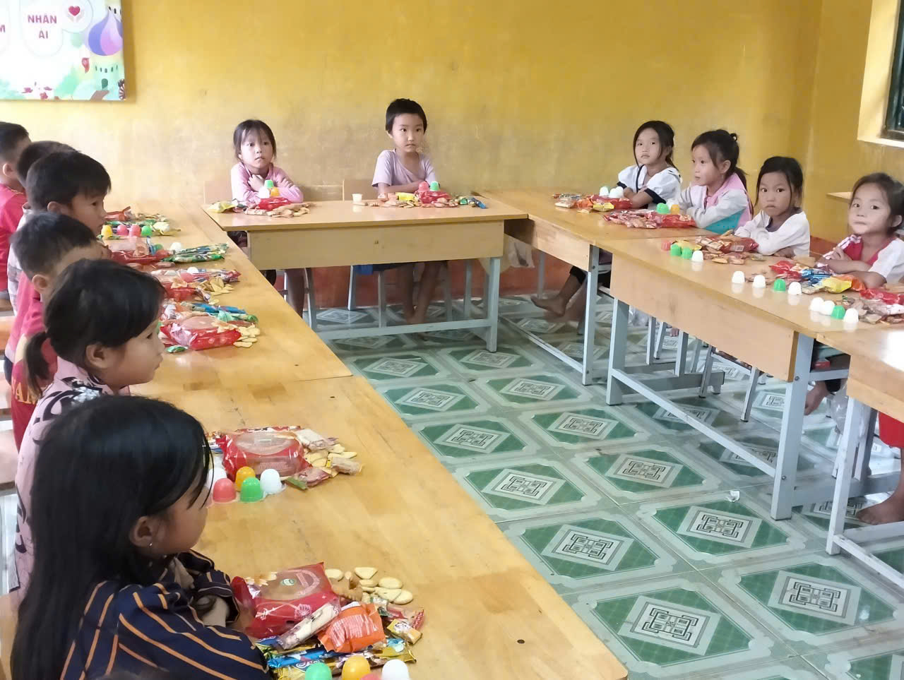Ngay từ đầu giờ chiều, không khí trở nên rộn ràng với tiếng cười, tiếng gọi nhau ríu rít, những đôi mắt sáng lên khi thấy bàn lớp được bày biện bánh kẹo, sữa .