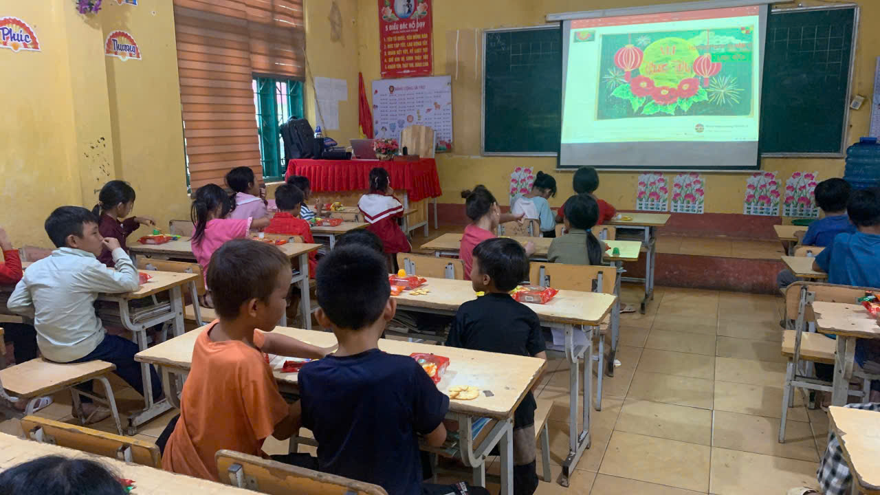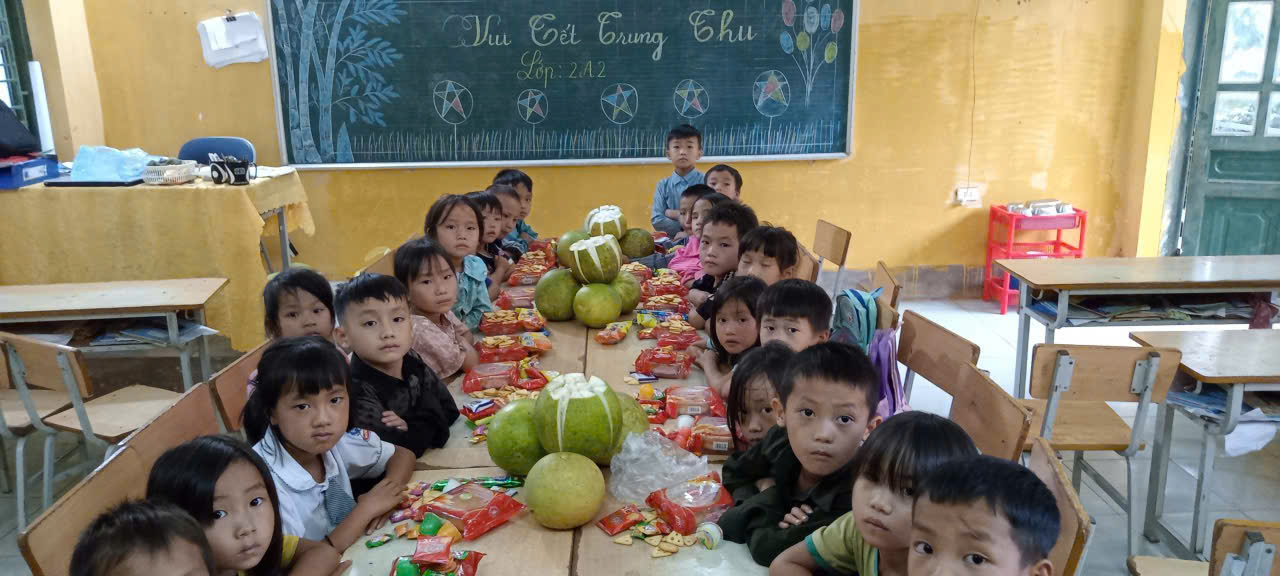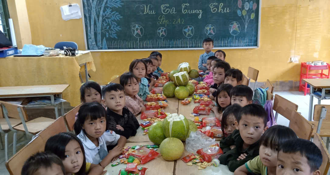 Không có sân khấu lớn, không có đèn lồng giăng khắp nơi như ở phố thị, lớp học đơn sơ trở thành không gian ấm áp và rộn ràng nhất trong ngày vui trung thu. Buổi chiều học sinh được các thầy cô đặc biệt dành riêng để tổ chức Tết Trung thu cho học sinh – những em nhỏ quanh năm sống giữa núi rừng, còn nhiều thiếu thốn và thiệt thòi.